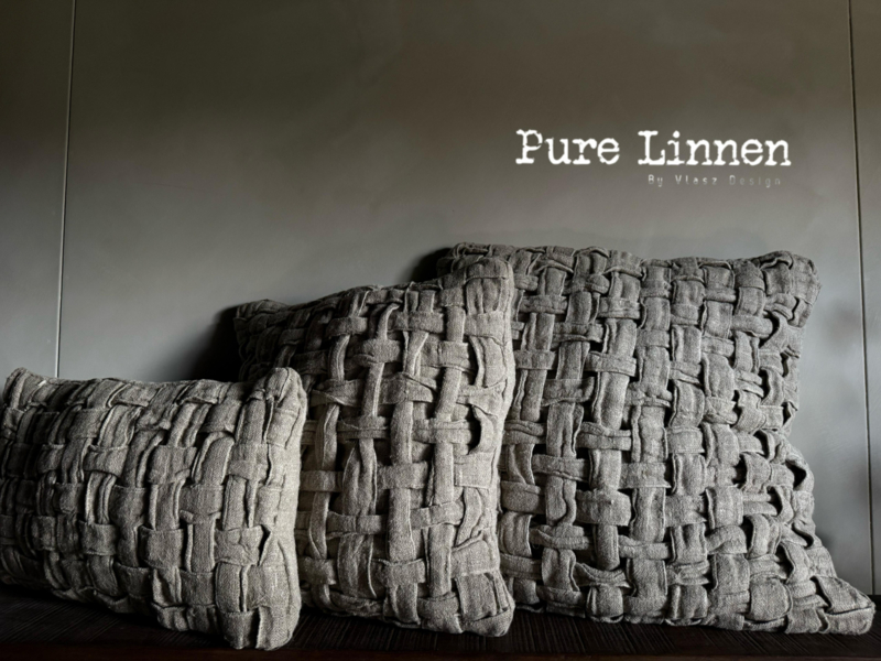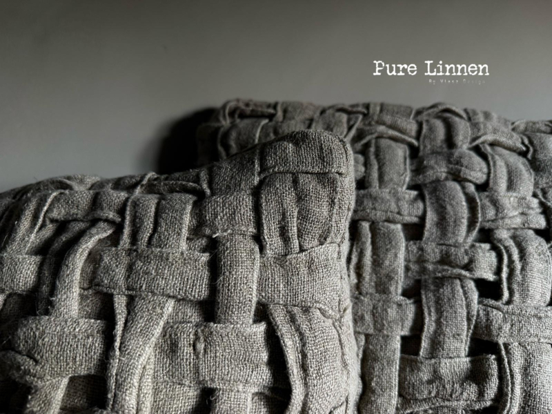 Het linnen sierkussen ZOE van Pure Linnen kenmerkt zich door zijn uitgesproken, gevlochten structuur en rustige vormgeving. Het ontwerp speelt met textuur en reliëf, waardoor het kussen vanuit elke hoek een subtiele diepte en een rijk oppervlak laat zien.