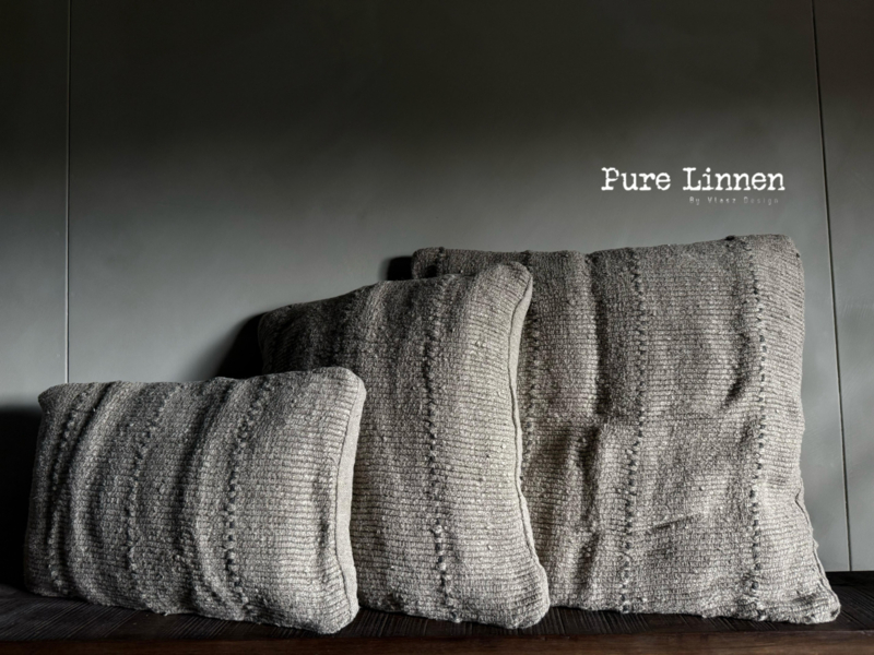 Het linnen sierkussen ZEMIRA van Pure Linnen onderscheidt zich door zijn verfijnde lijnenspel en gestructureerde oppervlak. De subtiele, verticale belijning geeft het ontwerp ritme en diepte, waardoor een rustig maar karaktervol geheel ontstaat.