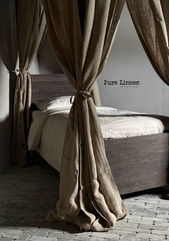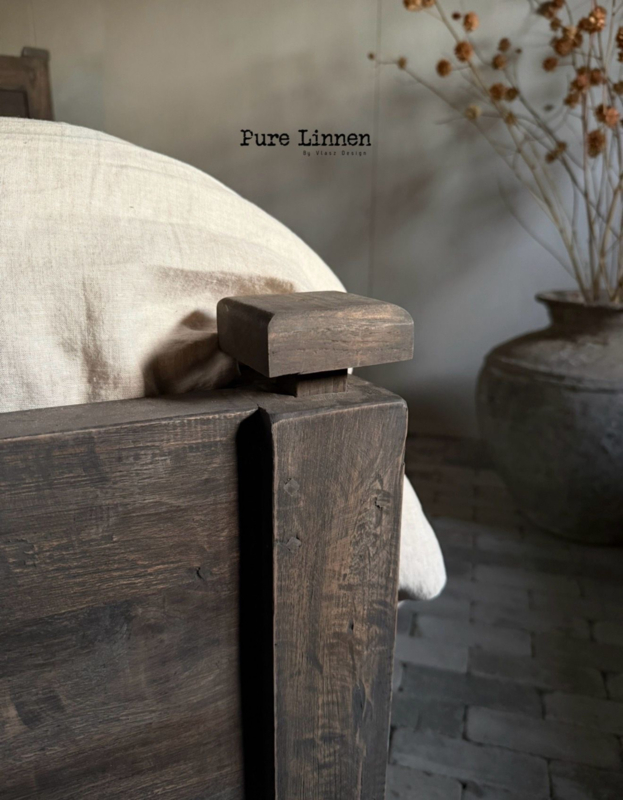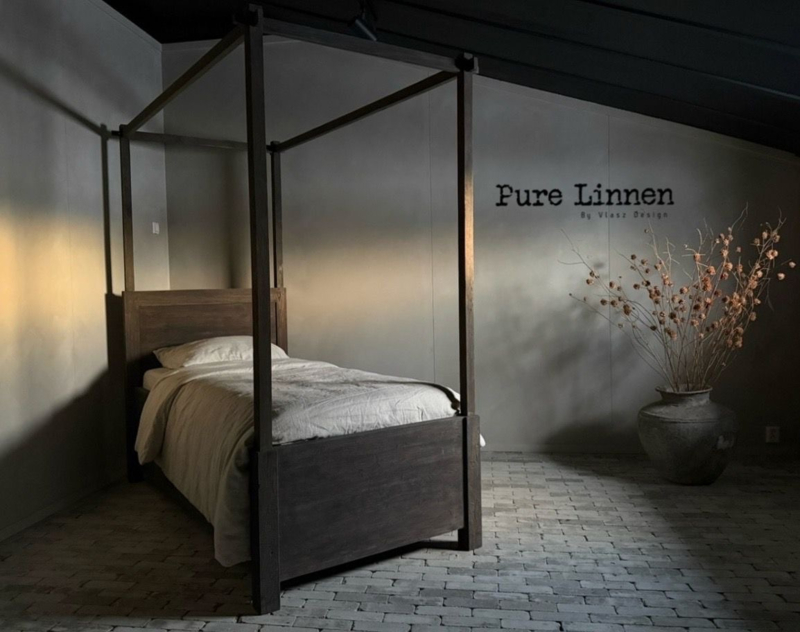 Dit bed is een ontwerp van Pure Linnen by Vlasz Design – waar ambacht, natuurlijke materialen en tijdloos design elkaar ontmoeten.